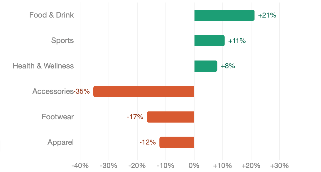 When we compare Q1 2026 to 2025, sends per brand fell across most retail categories. Accessories brands like Sheertex and Baboon to the Moon dropped their campaign volume significantly YoY. Footwear and apparel brands’ sends are also down.