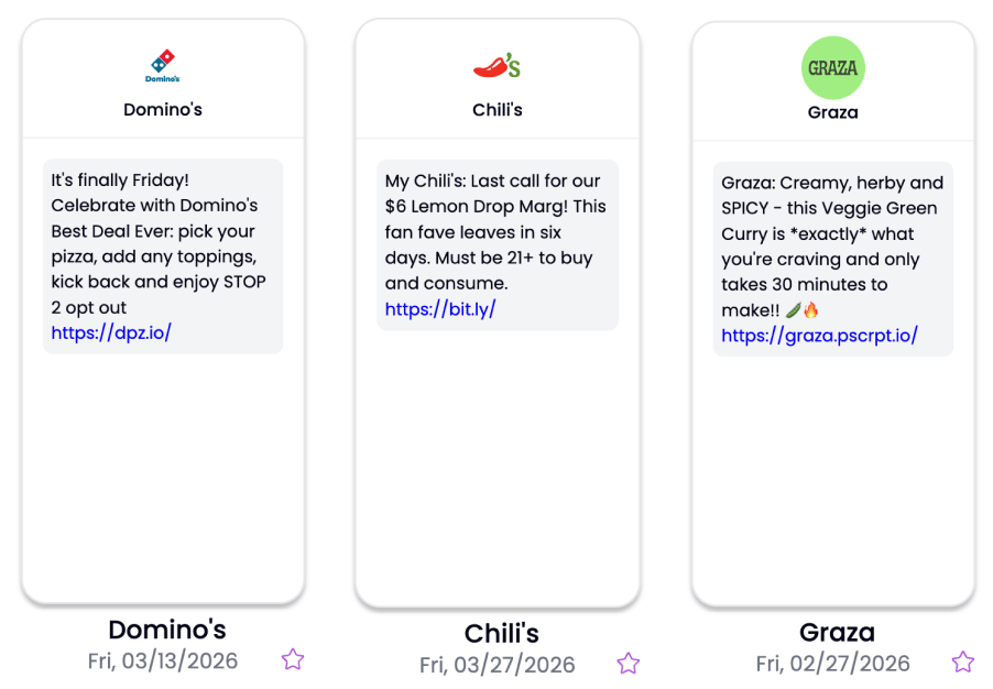 On Fridays, Domino’s and Chili’s aim for conversion with limited time promos. Graza’s Friday campaigns include recipes, office dog photos, and haikus about mayo - content designed for engagement.