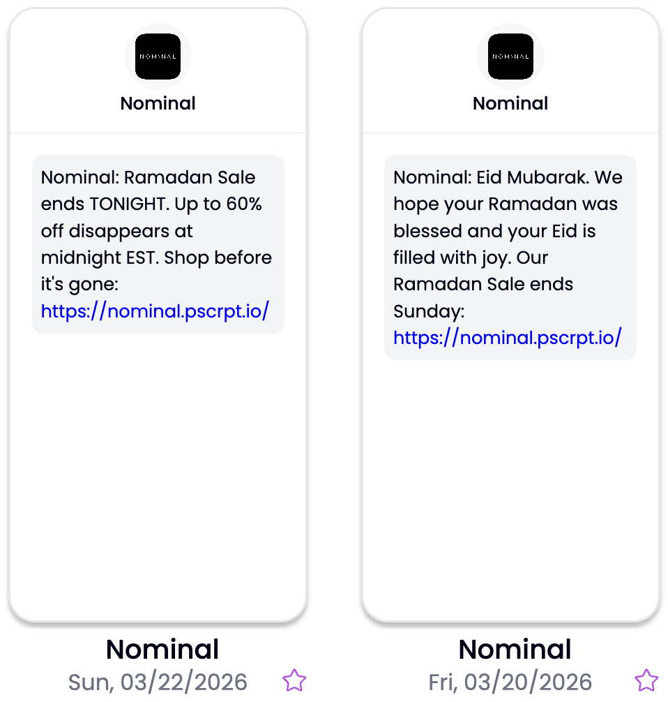 I noticed only one brand in our sample of ~1000 brands explicitly acknowledged Ramadan. It was Nominal, a Palestinian-owned jewelry brand.