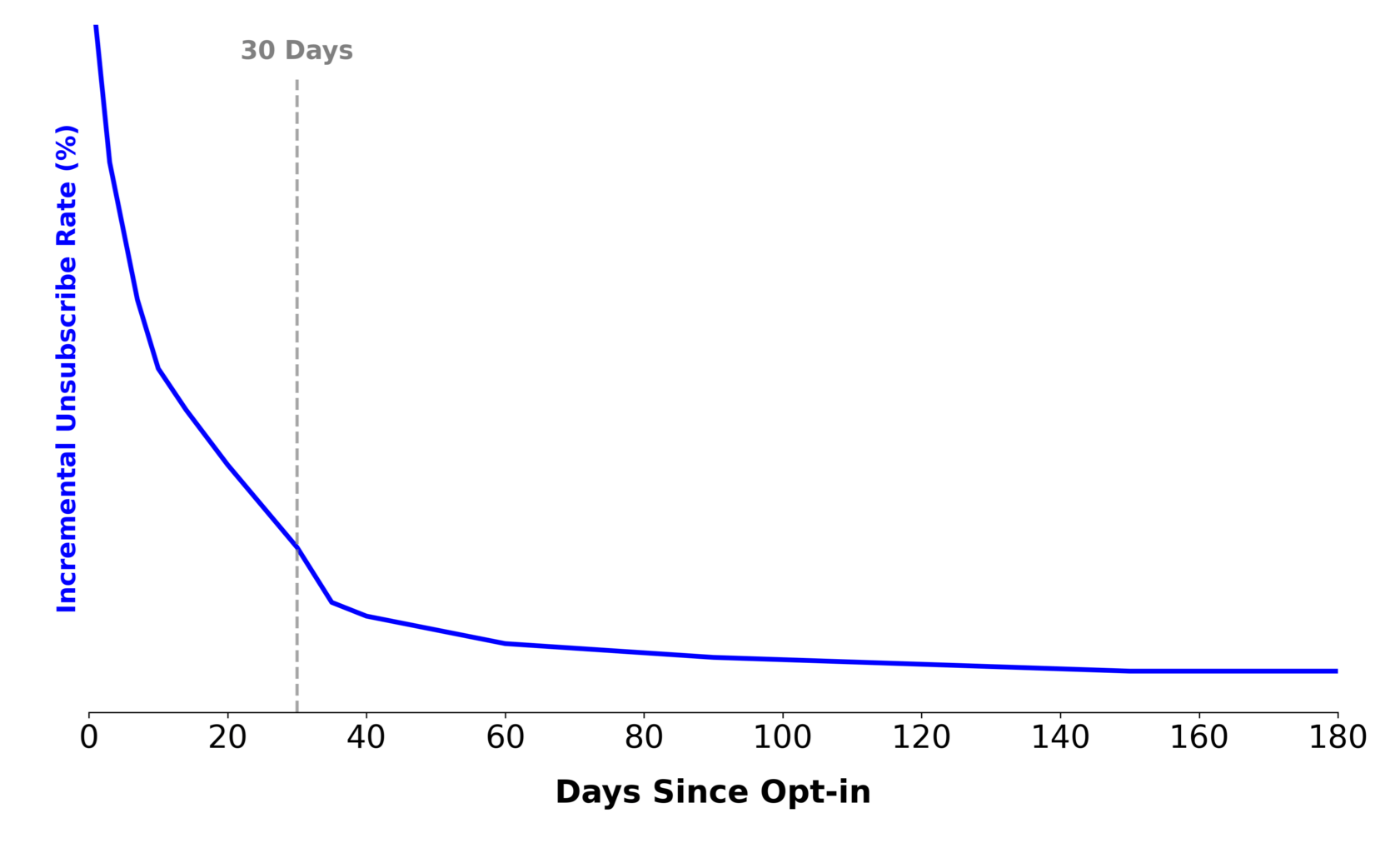 Typically this is what the unsubscribe rate looks like for cohorts of new subscribers.